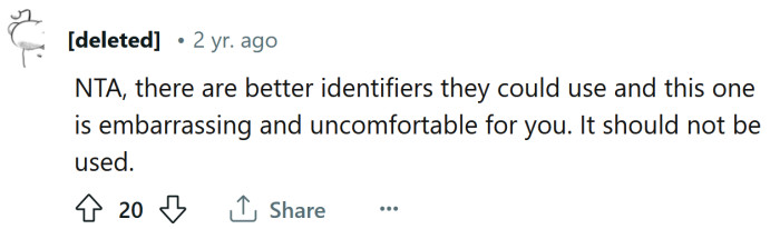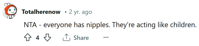 The Redditor was confused because she had never heard that description before, but she soon realized that she must be "Jessica with the nipples." The charge nurse tried to make a joke about it later on, but the OP felt embarrassed and awkward.