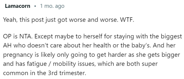 This scenario highlights the significant stressors that can impact expectant mothers, particularly when they feel unsupported.