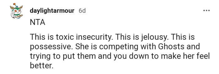 "She is competing with ghosts and trying to put them and you down to make her feel better."