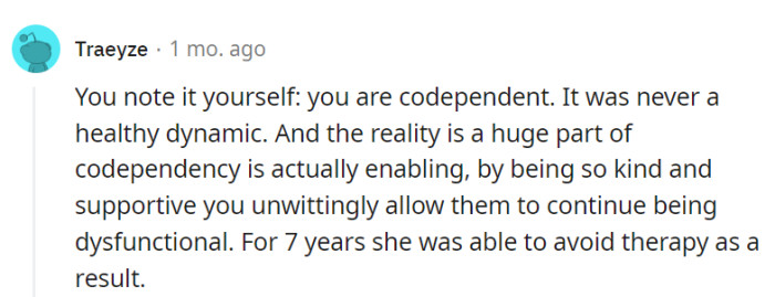 RedditThey had been together for seven years. OP shares how he's a codependent person, despite his wife having ten mood swings a day.
