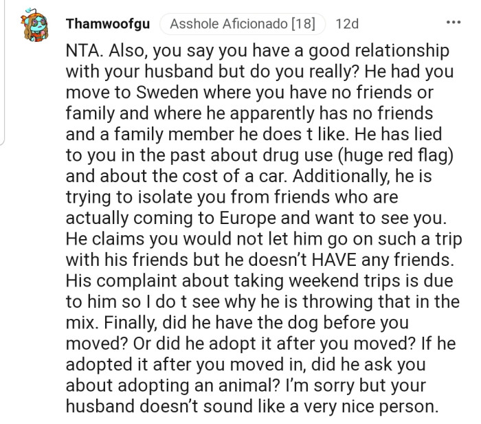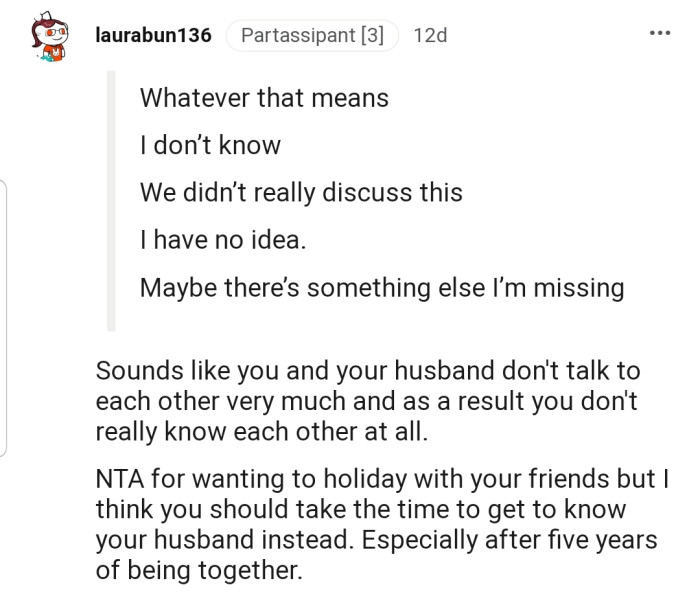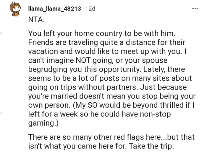 One Redditor found herself questioning her decision to hang out with her friends on a girls’ trip abroad when her husband got upset about the week-long trip.