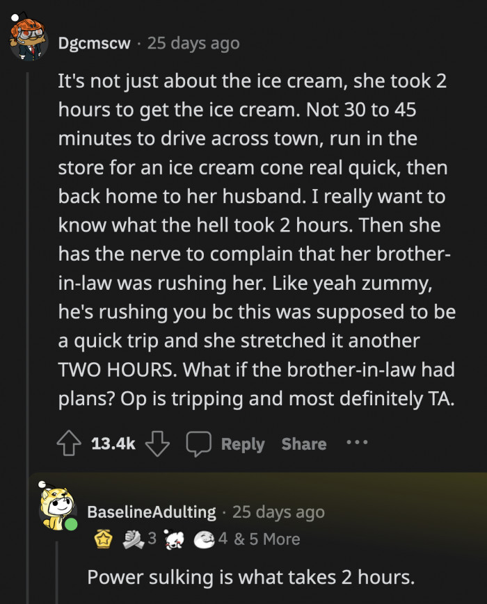 He was hesitant, but OP convinced him after she threatened to get an Uber instead. Her BIL was glued to his phone the whole time she was eating ice cream, and he was obviously trying to rush her.