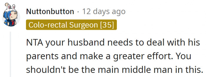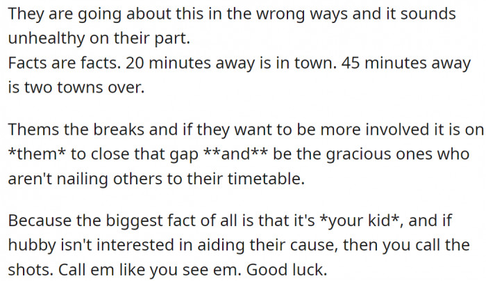 Redditors advised her to talk to her husband and suggested that he should take their daughter to his parents as much as he can. She should not be at the center of their complaints.