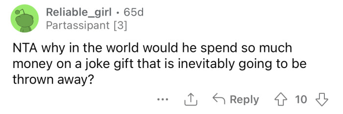 This underscores why the Redditor's actions might not be as impulsive as they appear but rather a reflection of deeper feelings about the relationship and the appropriateness of the gift.