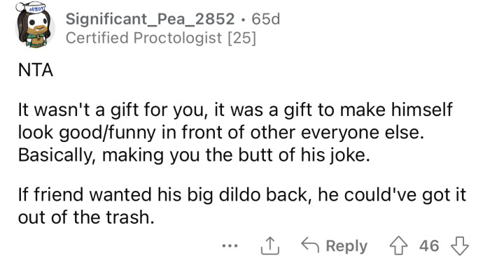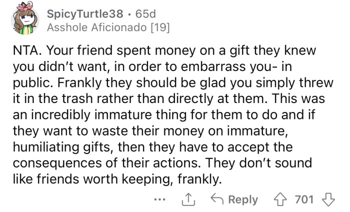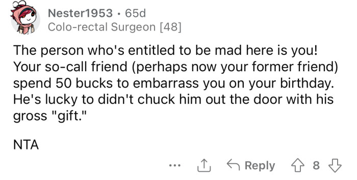 What's your take on this situation? Do you think the OP overreacted and that the gift was just a bit of fun, or do you think her friend was out of line?