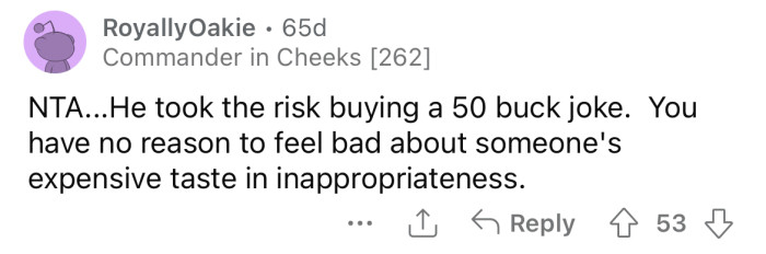 "You have no reason to feel bad about someone's expensive taste in inappropriateness."