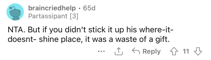 In this case, a conversation about the appropriateness of the gift and the feelings it evoked could lead to a more constructive outcome than the drastic action taken by the Redditor.