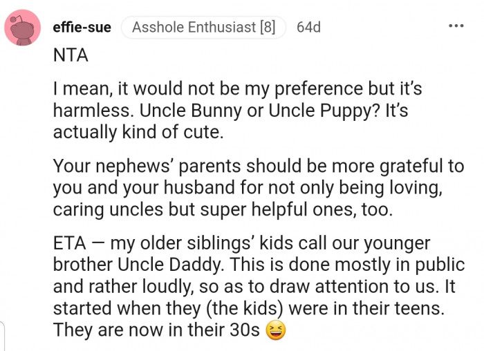 What are your thoughts on OP's brother and SIL's reaction to their kids saying those pet names? We’d love to see them in the comments section!