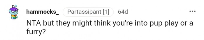 "They might think you're into pup play or a furry?"