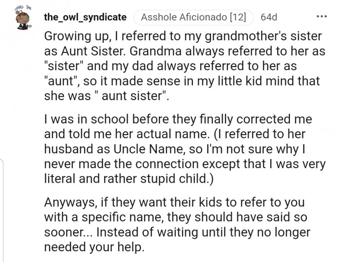 "If they want their kids to refer to you with a specific name, they should have said so sooner... Instead of waiting until they no longer needed your help."