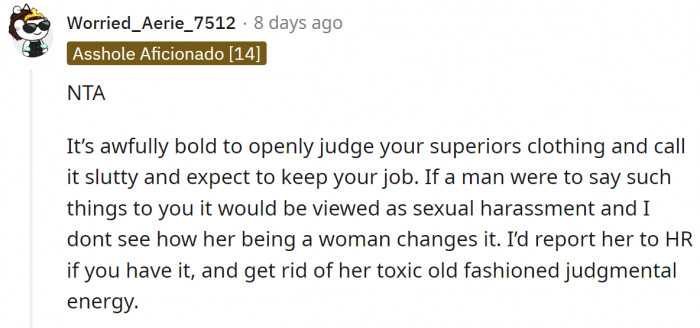 New Hire Calls Her Boss's Outfits Provocative And Freely Belittles Her Professional Skills