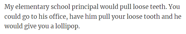 "My elementary school principal would pull loose teeth."