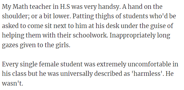 A math teacher used to randomly rub girls' shoulders.