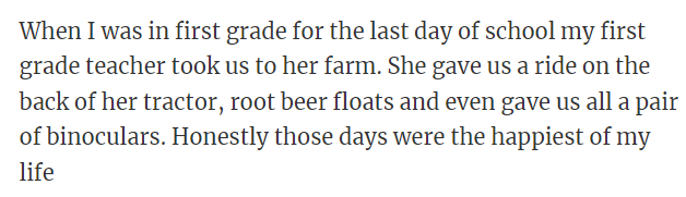 RedditThe teacher would take three kids every Friday for lunch.