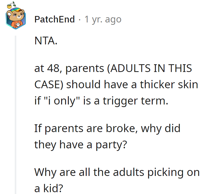 "If parents are broke, why did they have a party?"