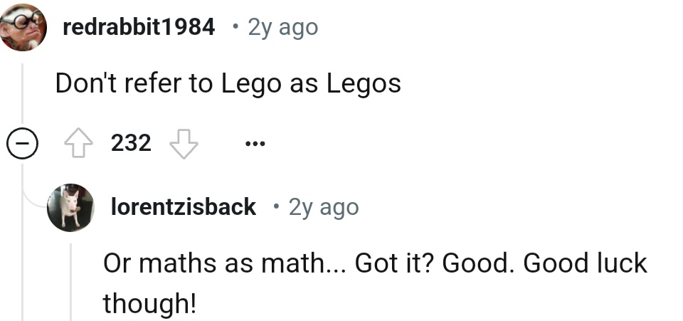 Next, never refer to Lego as “Legos” or maths as “math.” These tiny details matter more than you think. Also, expect more profanity. You probably shouldn’t join in, but it’s best not to look too shocked when it happens.