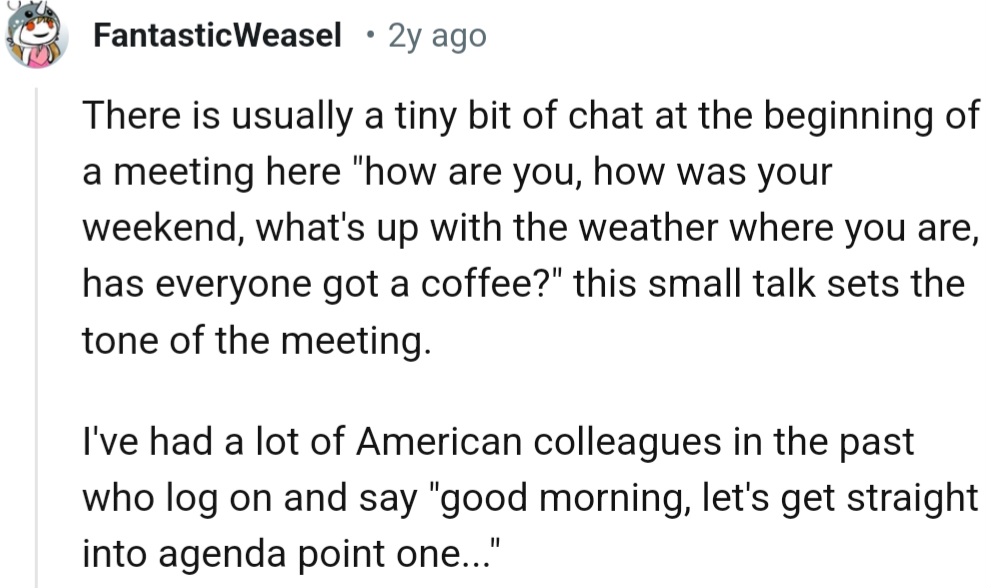 "I have had a lot of American colleagues in the past who log on and say 'good morning.'"