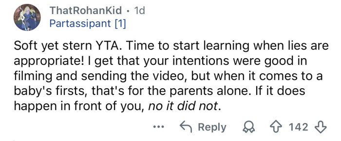 While his buddy thought it was awesome and didn’t seem bothered, the mom was reportedly furious. She felt like he had robbed her of one of the biggest moments of her child’s early life.