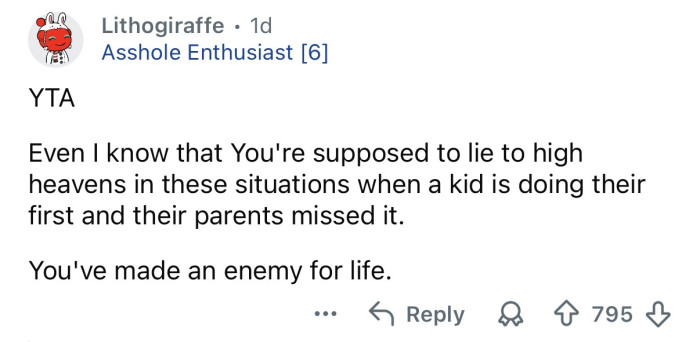 At the end of the day, his intentions were pure—and his “crime” was caring too much. Still, it’s a tough lesson in how even the sweetest moments can have complicated consequences when it comes to parenting milestones.