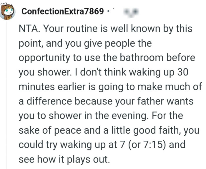 "That's Ridiculous" - AITA For Taking A Shower At 7:30 Everyday And Disregarding Dad's Suggestion