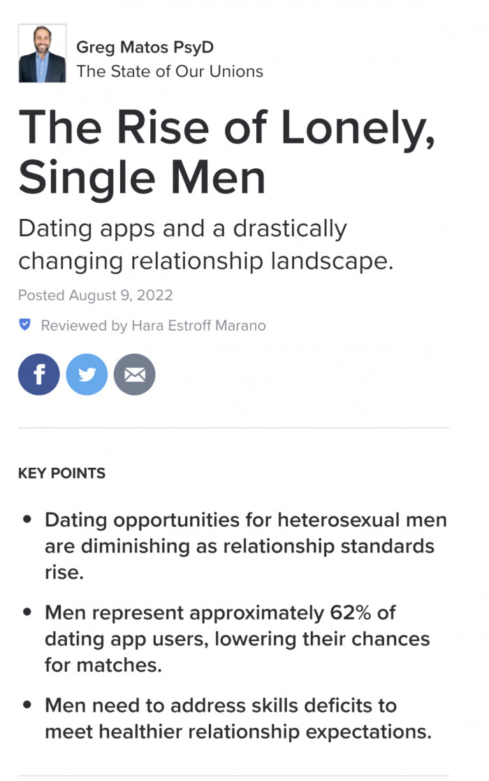 Essentially, the majority of single men are affected by this and will continue to bepsychologytoday