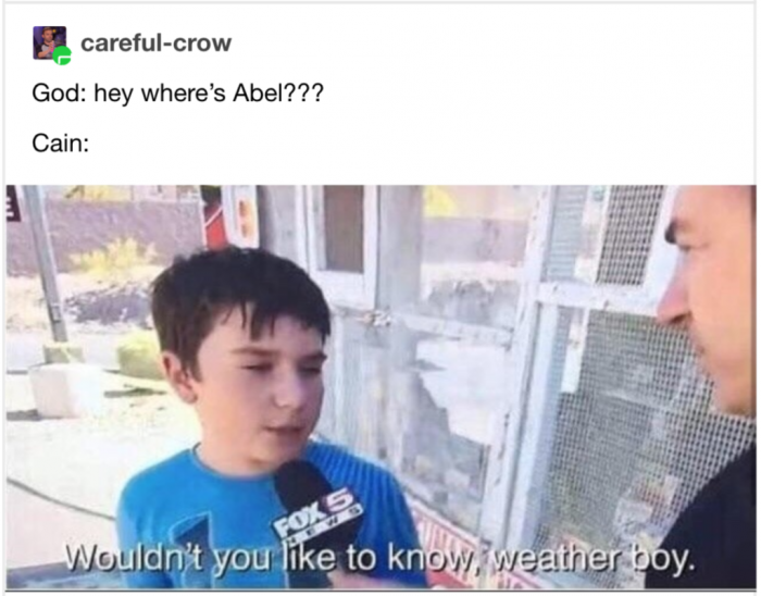 6. I always thought of Cain as 'the first funny bitch.' Okay, not really... but now I do.