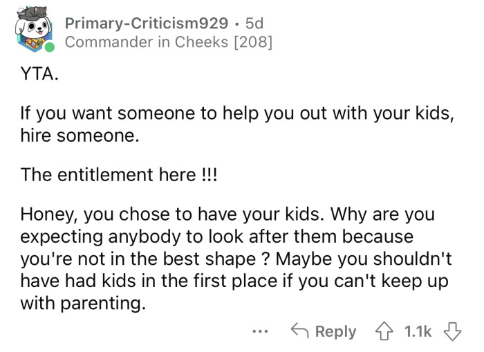 "They are not obligated to help you with your kids."