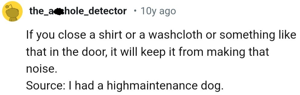 "If you close a shirt or a washcloth or something like that in the door, it will keep it from making that noise."