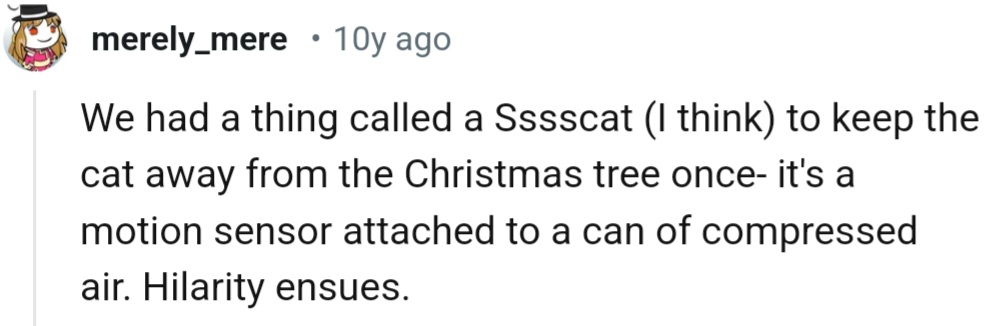 "We had a thing called a Sssscat (I think) to keep the cat away from the Christmas tree"