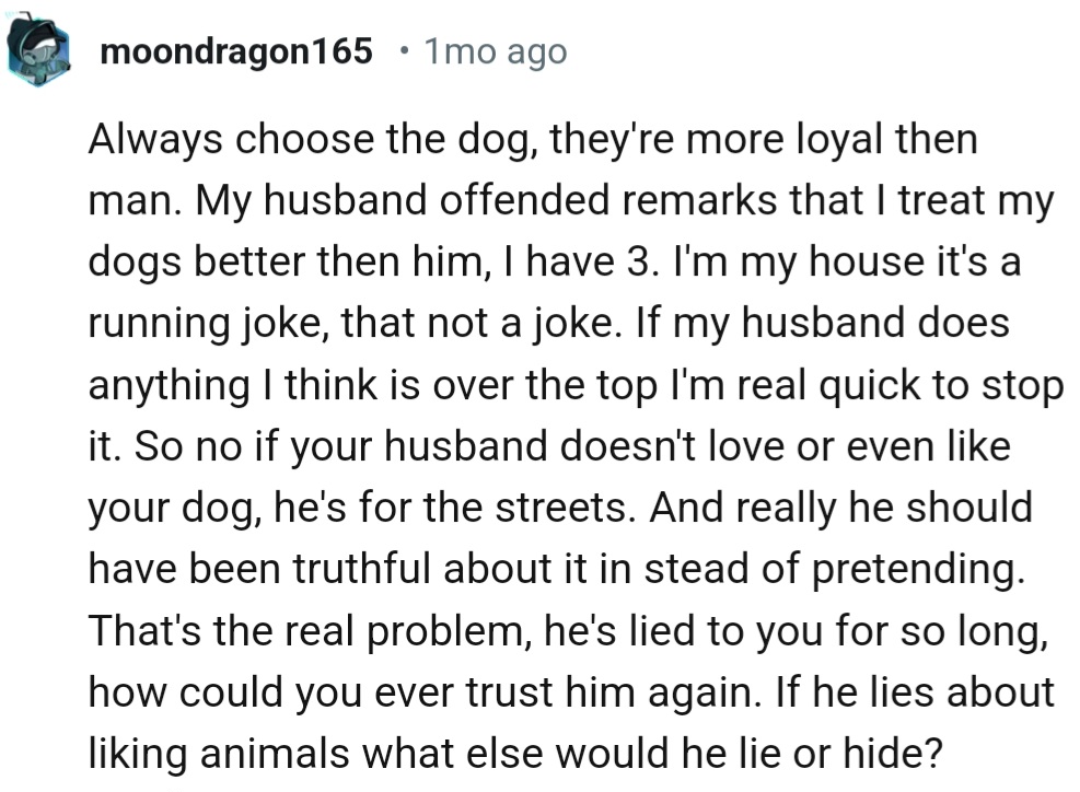 The backlash from the community against OP’s husband was swift; one could say they came for his head. The consensus was clear: anyone who mistreated animals was the physical embodiment of a red flag.