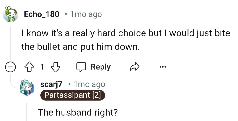 "It's a really hard choice, but I would just bite the bullet and put him down"