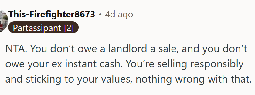 Loyalty to a principle can strain loyalty to people. In one Redditor’s case, the test arrived with an ex’s demand for speed and a line of landlords ready with cash.