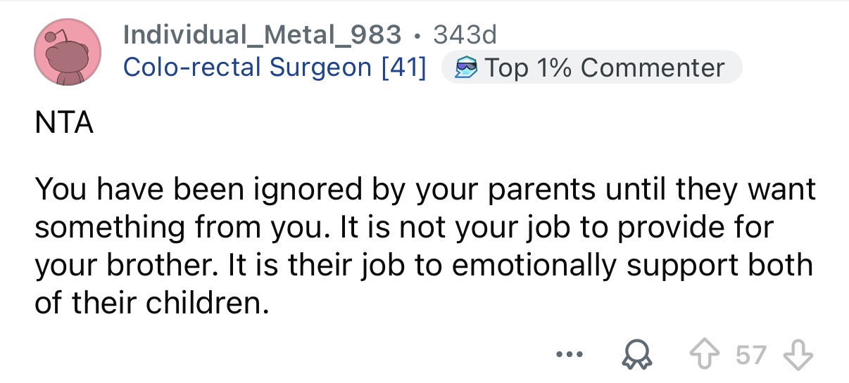 At the time, the Redditor was only two, far too young to understand why his parents were suddenly absent from his world. While his brother fought for his life, he was often sent to stay with a nearby uncle who didn’t want him around or with neighbors who barely noticed him.