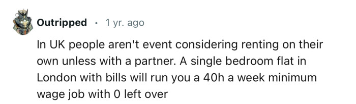 "In the UK, people aren't even considering renting on their own unless with a partner."