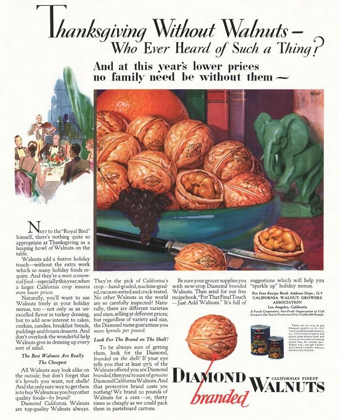 "Thanksgiving Without Walnuts?" - Diamond Walnuts (1929)