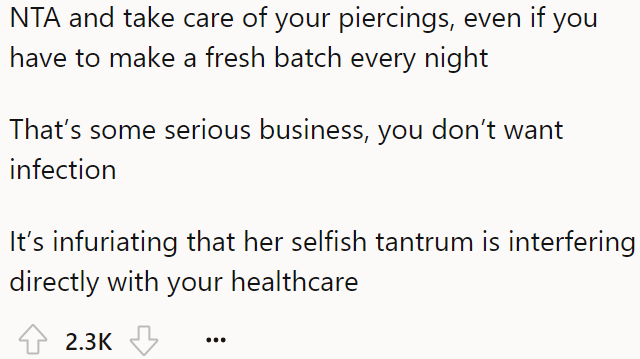Days later, SIL complained about her skin being dry and itchy. She eventually confronted the OP, accusing him of sabotaging her skin with a small spray bottle she had been using, which she thought contained water but was actually salt water, intended for the OP's fresh ear piercings.