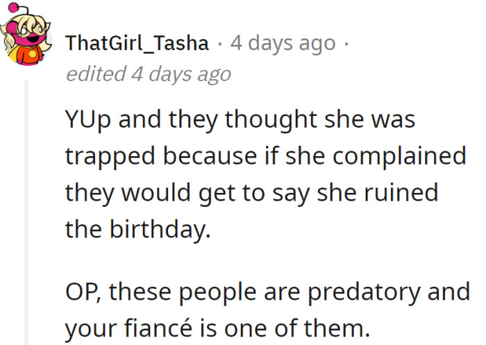 In this case, the Redditor might benefit from asserting her boundaries more firmly to prevent further emotional manipulation.