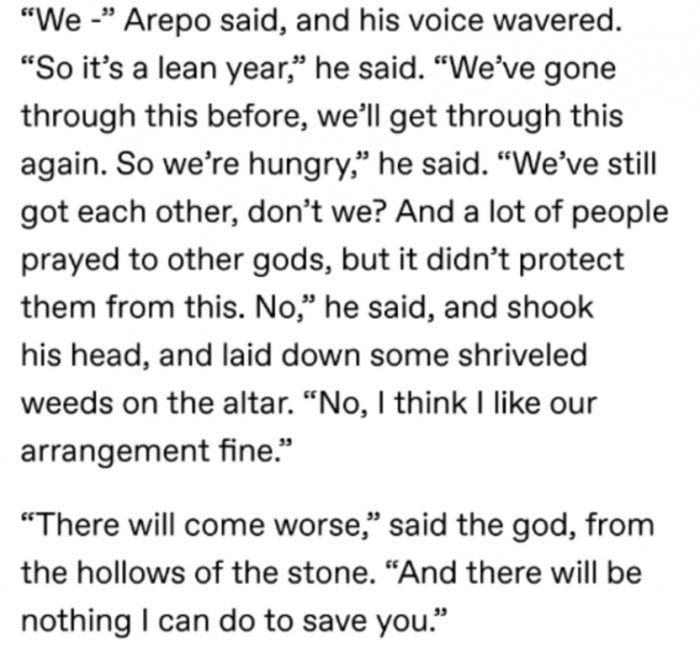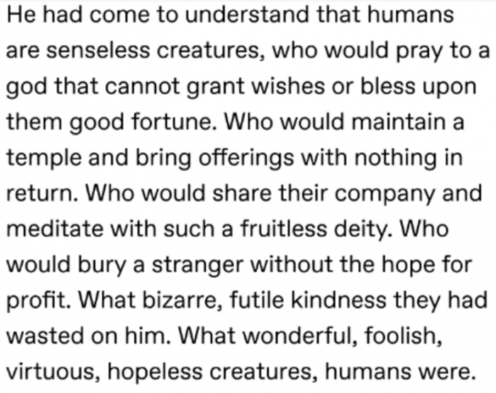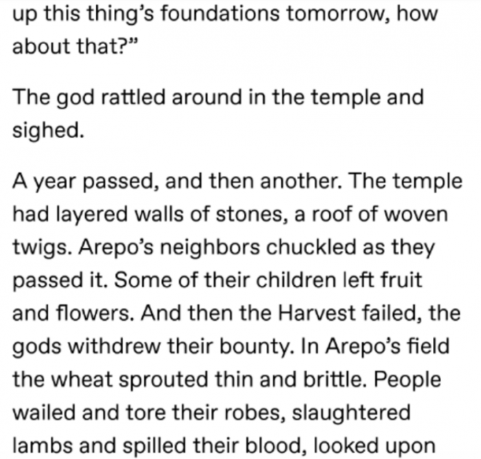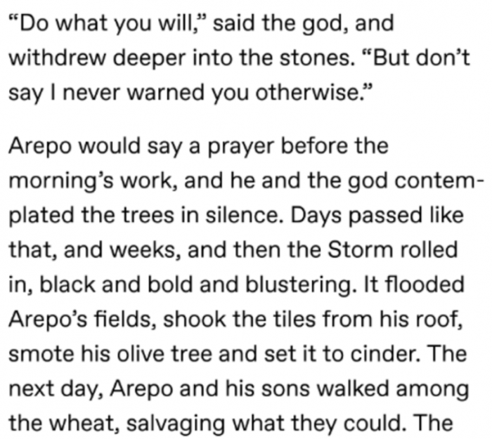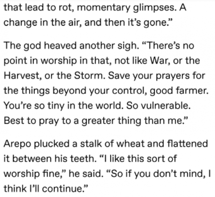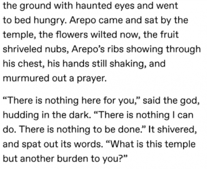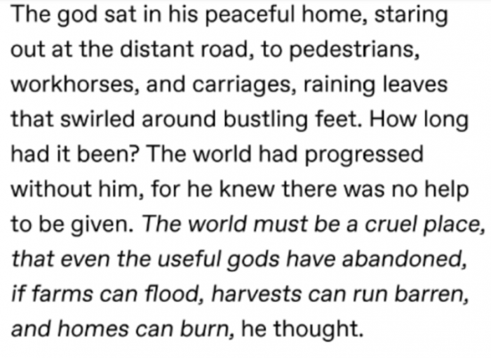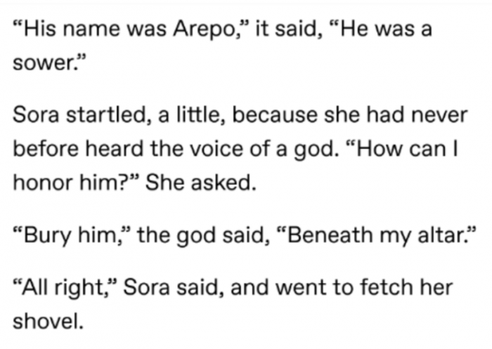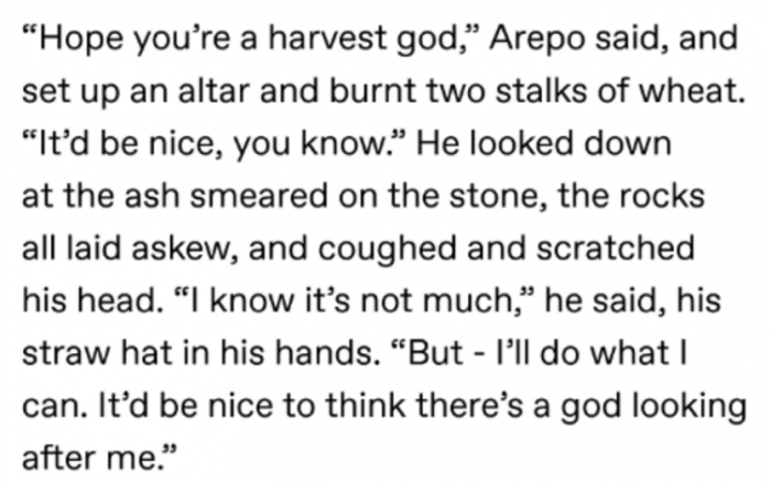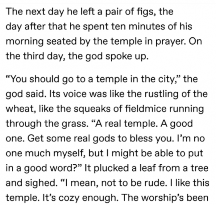 "A farmer decided to build a small temple on his land to find out what kind of god would move in."
