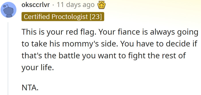 It seems like her future MIL doesn't want to acknowledge and respect her boundaries.