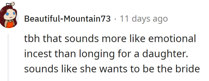 RedditThe OP explained her future MIL is so excited about the wedding and wanted to assist her in finding the perfect wedding dress: