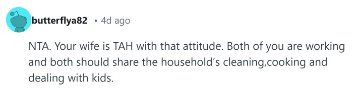 "Your wife is TAH with that attitude."