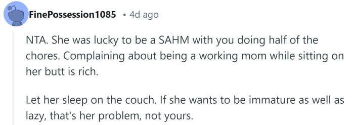 In the end, the Redditor wasn't just venting about chores; he was sounding the alarm on a partnership that had completely lost its balance. Whether this couple works things out or keeps sliding into the silent-treatment territory, one thing is for sure: the internet will be watching every update like it's the next episode of a drama series one of us meant to binge!