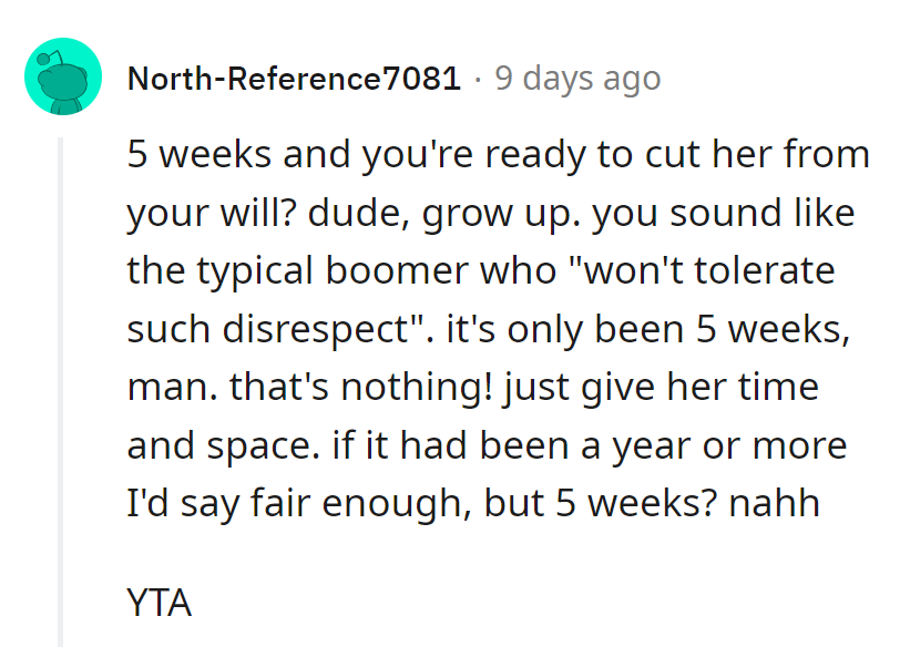 "You sound like the typical boomer who 'won't tolerate such disrespect.'"