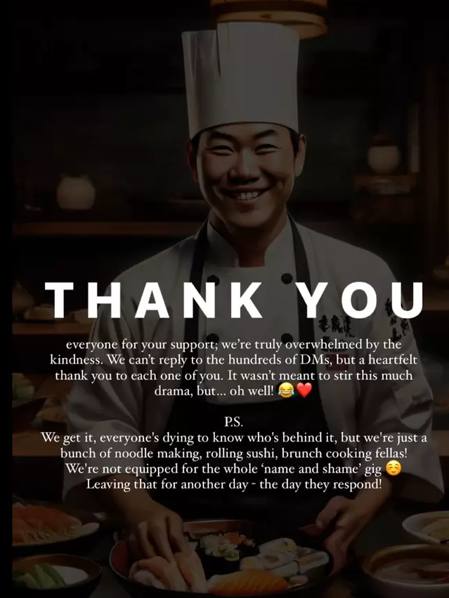 As the dust settles on this amusing encounter, Lucky Ramen & Sushi has gained not just a few laughs but also a wave of support from those who appreciate its stance.