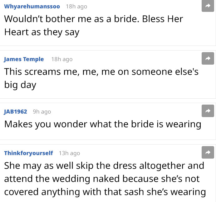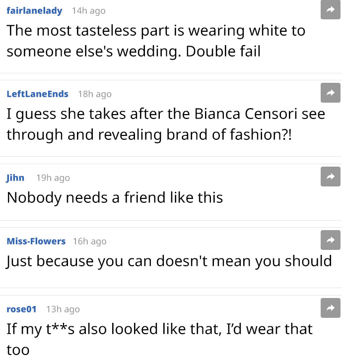 Many accuse her of trying to overshadow the bride and seek publicity.
