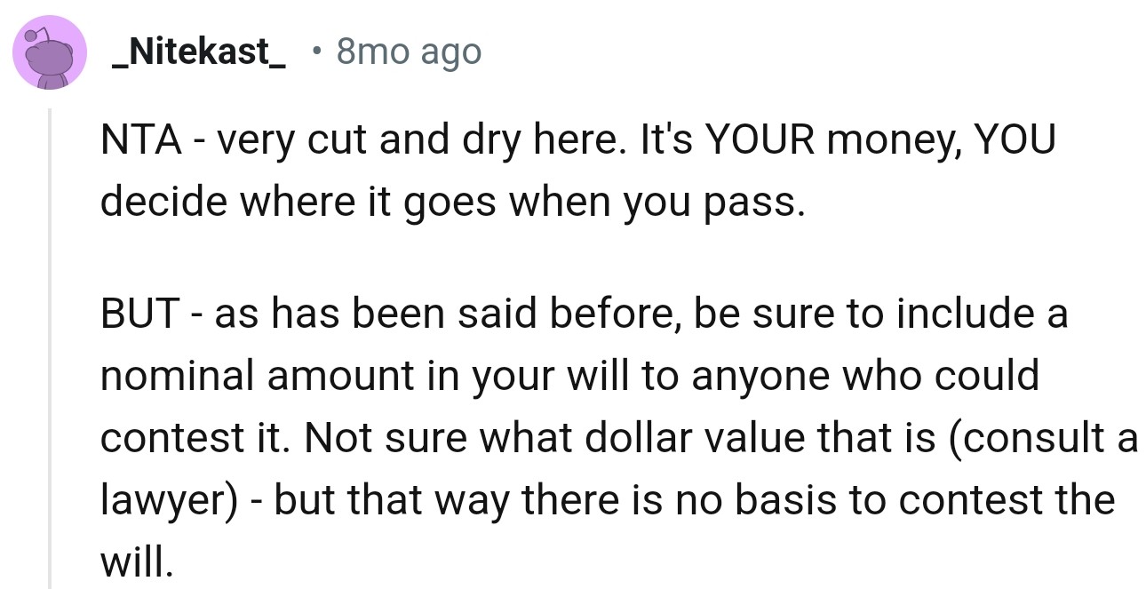 Now, before you get all judgmental, let’s set the record straight—OP wasn’t here to debate whether or not disinheritance was the right call. The burning question was whether it was fair to the rest of their kids to leave Haley an equal share of their estate.