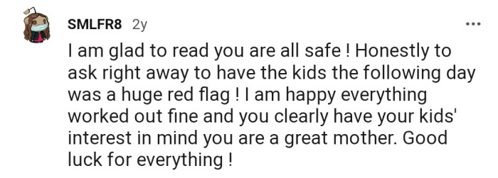 "Honestly, to ask right away to have the kids the following day was a huge red flag."