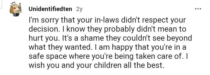 Despite OP considering rekindling her relationship with her in-laws in the future, many commenters have advised her to cut off that side of her family permanently.