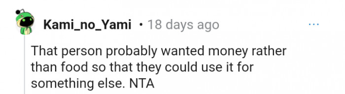 "That person probably wanted money rather than food"