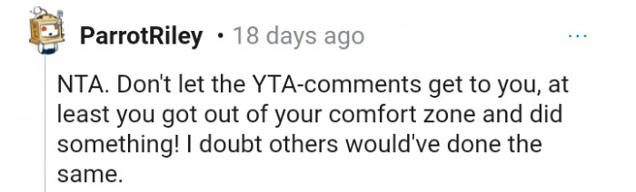"At least you got out of your comfort zone and did something!"